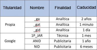 Nuestra página web utiliza las siguientes cookies: